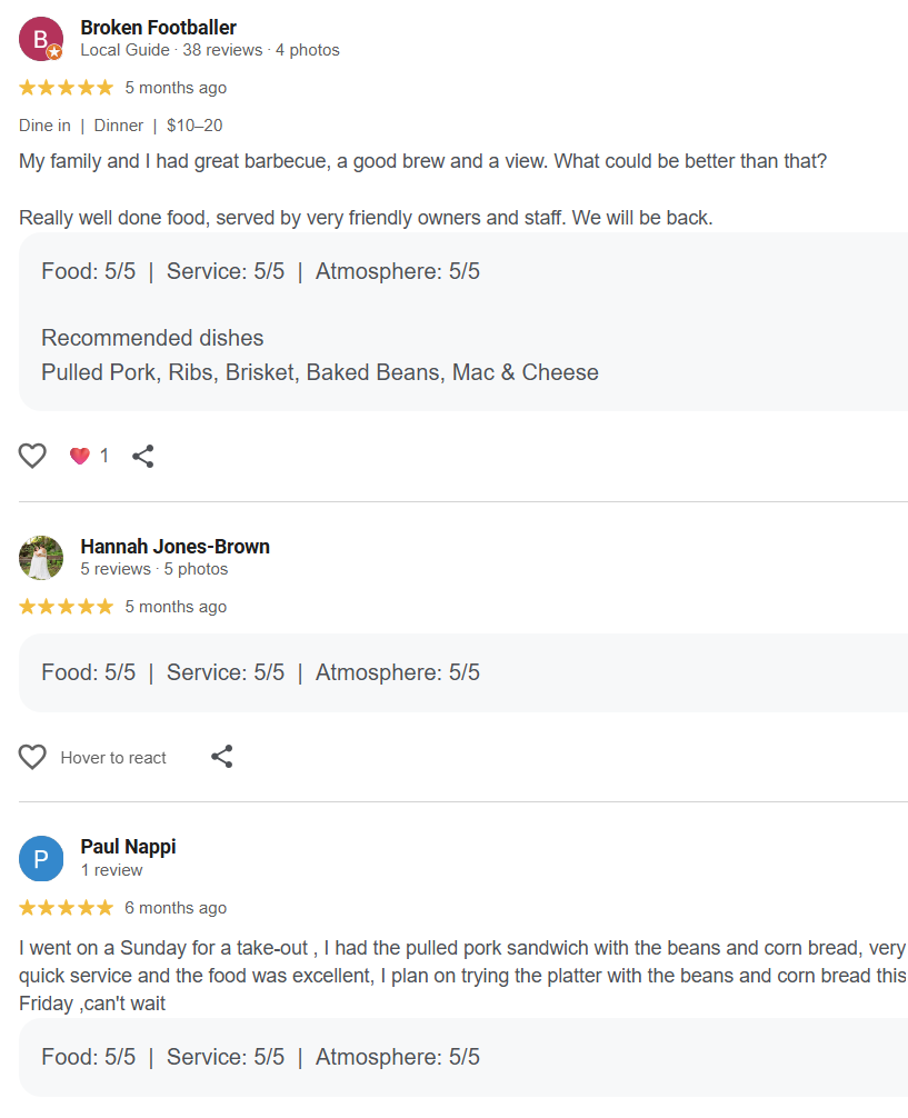 “⭐⭐⭐⭐⭐Blown away with the level of BBQ. I expected to leave thinking of Lobster Rolls, but the smoked sausage, tender brisket, and pulled pork were out of this world. The spit is roadside to #1, with beautiful views, plenty of seating, and fun yard games. This is a must-stop-by spot if you are East of Ellsworth!”